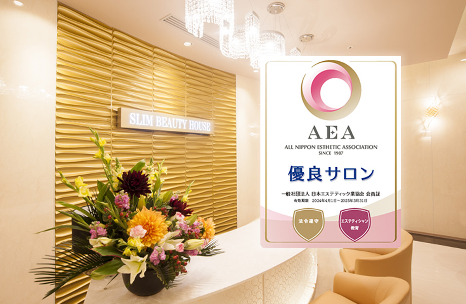 「安心・安全で信頼できるサロン」として、お客様へのコンプライアンス遵守とエステティシャン教育を適正に行っているサロンに与えられる、日本エステティック業協会(AEA)の「優良サロン」認定を取得しております。